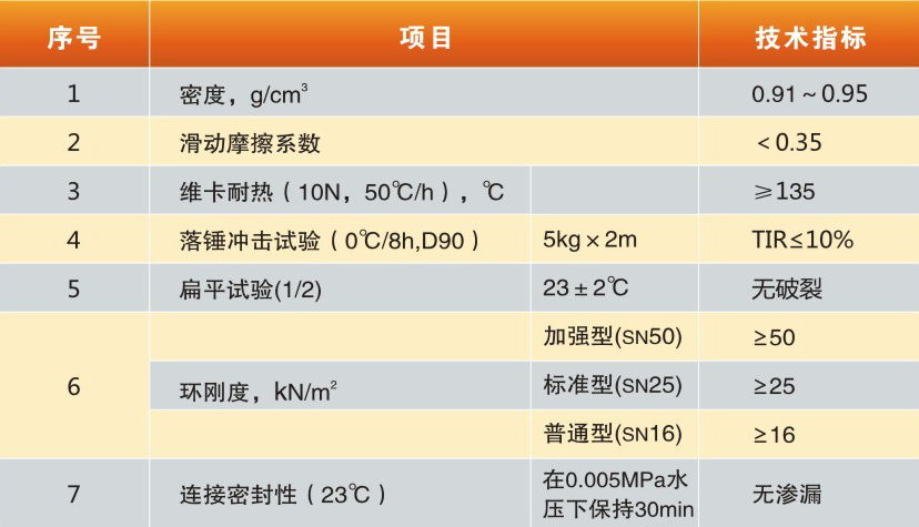 MPP單壁波紋管 (HFFB電力管) 技術(shù)指標(biāo)